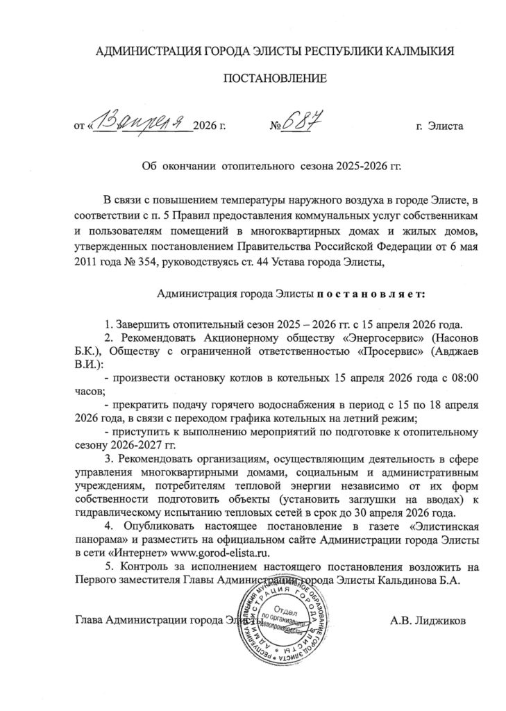 Об окончании отопительного сезона 2025-2026 гг.